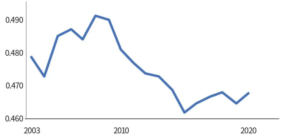 收入分配由初次分配与再分配组成,不同的人对收入分配的理解不一样。我个人关注的,主要是以基尼系数衡量的中国的收入差距,数值大了,那就说明收入差距扩大,如果这个数值小了,就是收入差距在缩小。一般来说基尼系数的取值是0-1,但很少有一个国家的基尼系数低于0.2,基本上在0.3-0.5之间,它的变动幅度是非常小的。